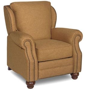 Make yourself at home with the casual elegance of this traditionally influenced recliner. From its rolled arms and nailhead trim to its curved wings and turned wood feet, this chair is touched by classical design from head to toe. Built for your leisure, this recliner is wrapped in a soothing fabric in addition to its easy-to-use recline mechanism. Whether standing alone in a tight corner of the room or positioned next to your living room sofa, this recliner is the perfect place to lounge. Refined style and a broad build come together in the modest design of this handsome recliner as it provides timeless style and versatility to a living room collection.