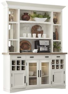 Beautiful display space meets functionality with our Americana Modern grand casual buffet with display hutch. A fresh, hand-painted cotton finish with a weathered natural top on the buffet gives it a timeless charm. The quartz top insert makes an ideal surface for food preparation and serving.Read More