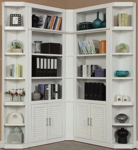 Creating the appearance of built-in cabinets is easier than ever with this ingenious modular wall. This arrangement provides the perfect corner library. Shown in cottage white finish, this library wall will be a gorgeous addition and superb functionality in your home.Read More