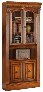Design a stunning focal point with the Huntington library wall and this 32-inch Glass Door Bookcase. Ideal for displaying books, accessories and favorite treasures, it features open display shelves, glass doors and closed storage compartments. A rich Antique Vintage Pecan finish highlights its fluted columns and carved detailing.Read More