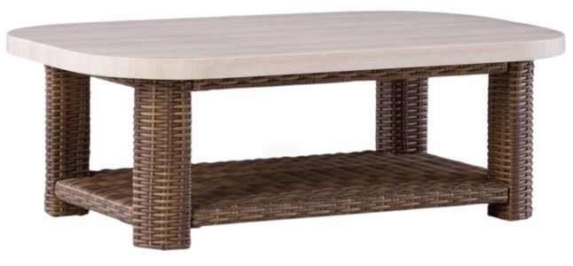 Get back to nature with the relaxed styling of this outdoor coffee table. Crafted with a sturdy aluminum frame and resin wicker, it offers exceptional durability and style. A smooth tabletop with softly rounded edges holds nibbles, sips and more. And don't forget the handy lower shelf. Sounds like fabulous form and function to us.Read More